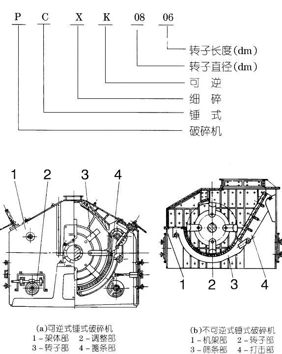 —破碎機分為左裝和右裝二種裝配形式,選用時若無要求,則按正常安裝圖供貨。右式裝配是指操作者面對機器轉(zhuǎn)子觀察口時,電動機安裝在右手側(cè)的形式,反之為左式裝配。