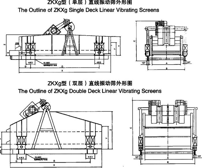 ZKXg型直線振動篩技術(shù)性能及安裝尺寸